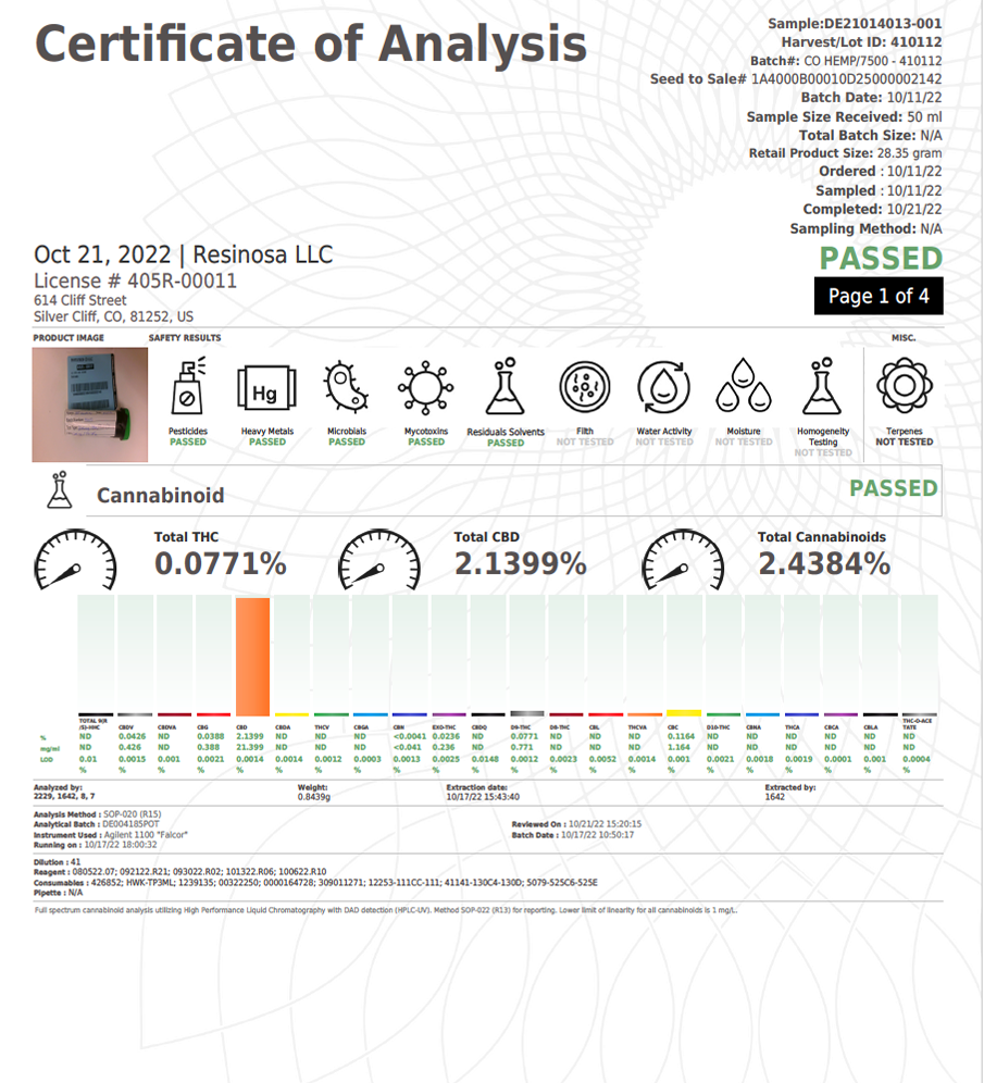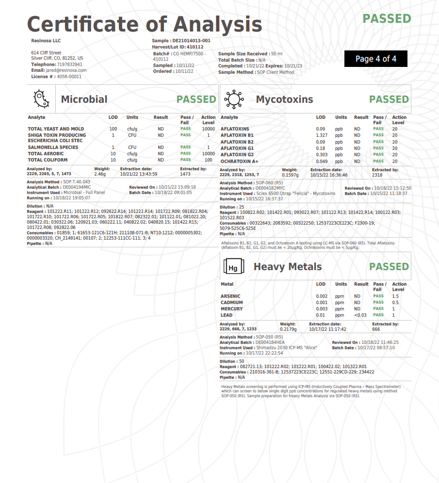 Download Certificate of Analysis (COA) Test Results HERE (.pdf)