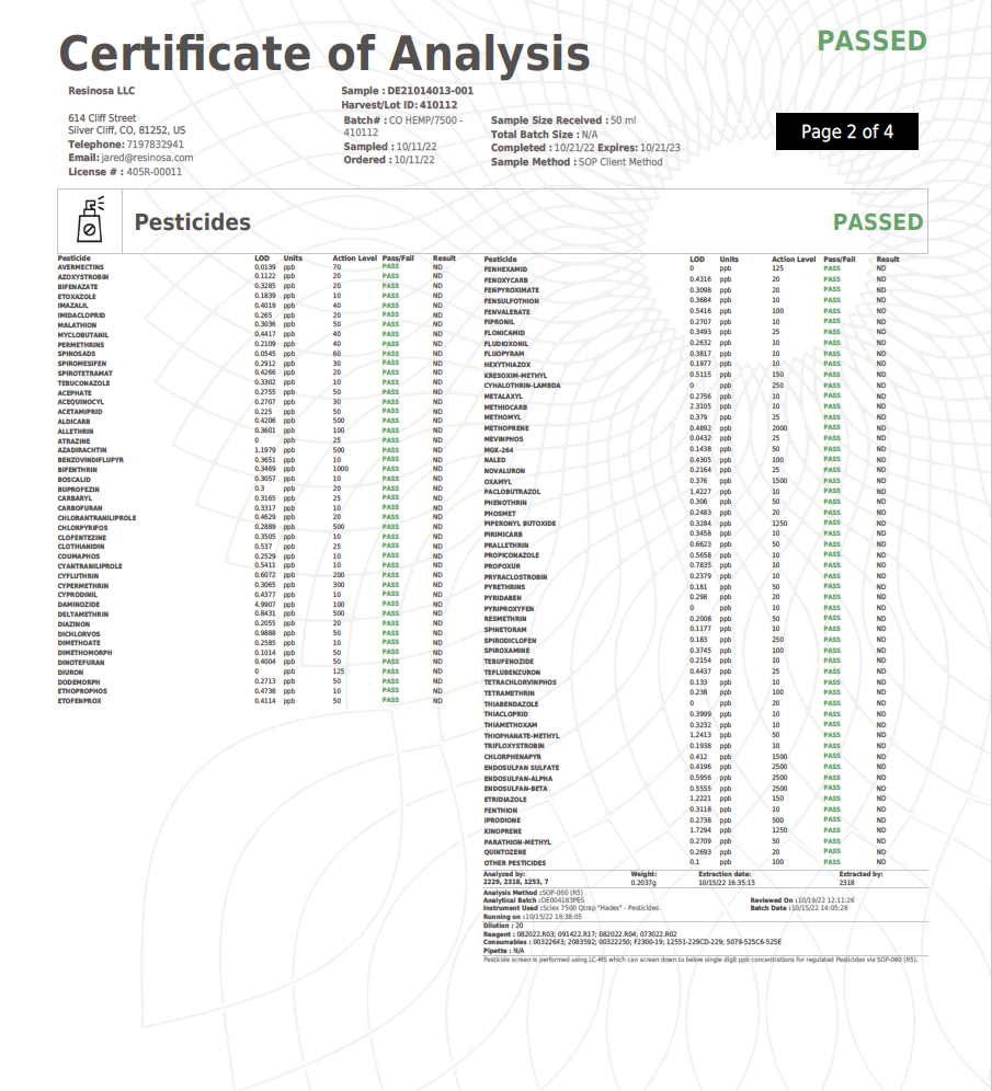 - canine CBD Certificate of Analysis page 2